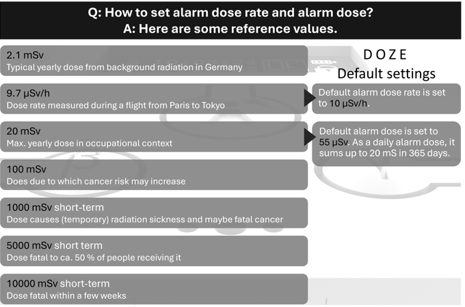 Technisch bietet der Doze ein OLED-Display, akustische Klicksignale (typisch für Geigerzähler), LED-Anzeige sowie eine USB-C-Schnittstelle.